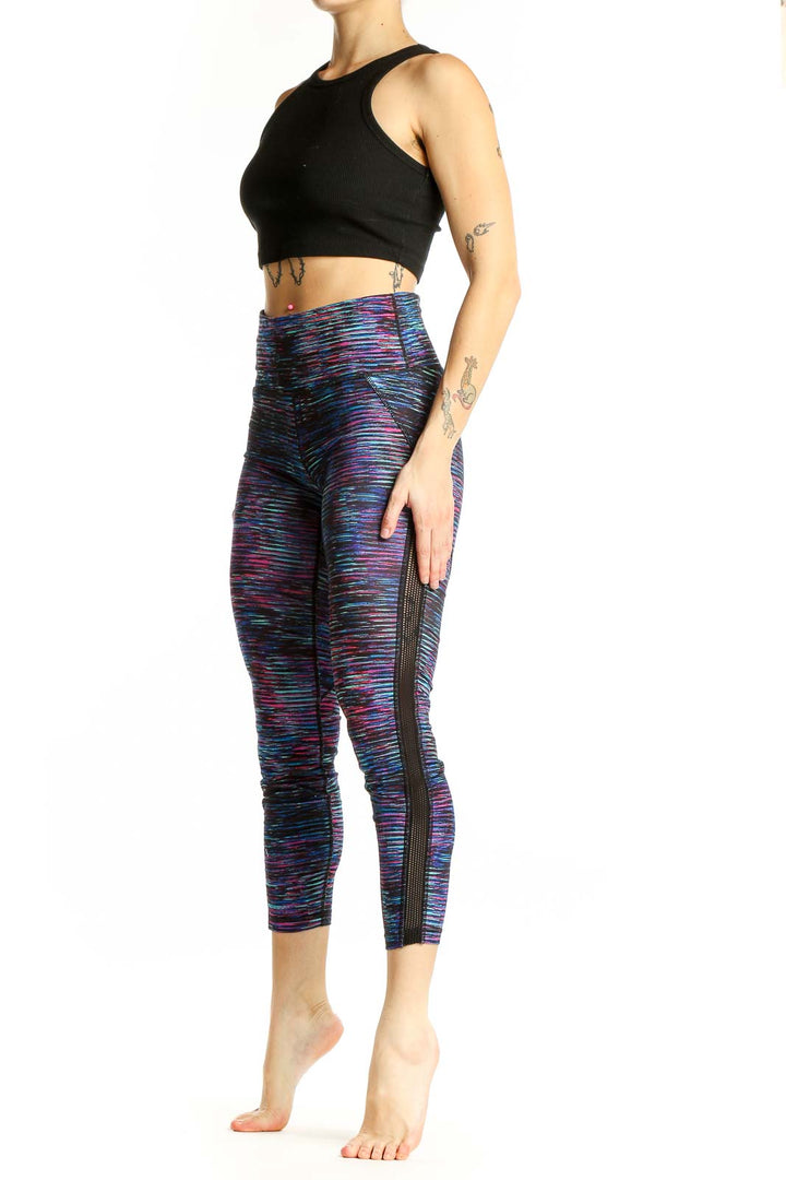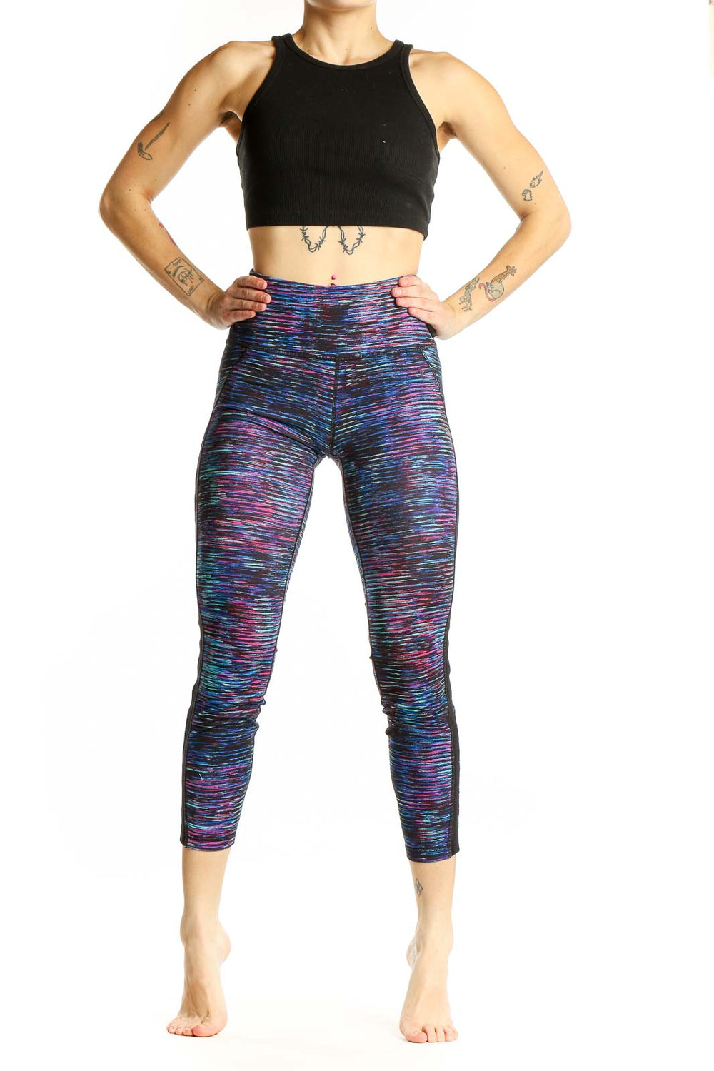 Elevate your workout wardrobe with these eye-catching Athleta cropped leggings. Featuring a mesmerizing space-dye pattern in shades of blue, purple, and pink, these leggings are sure to make a statement at the gym or during your yoga session. The high-waisted design offers excellent tummy control and a flattering fit, while the polyester-spandex blend ensures both comfort and flexibility during your most intense workouts.