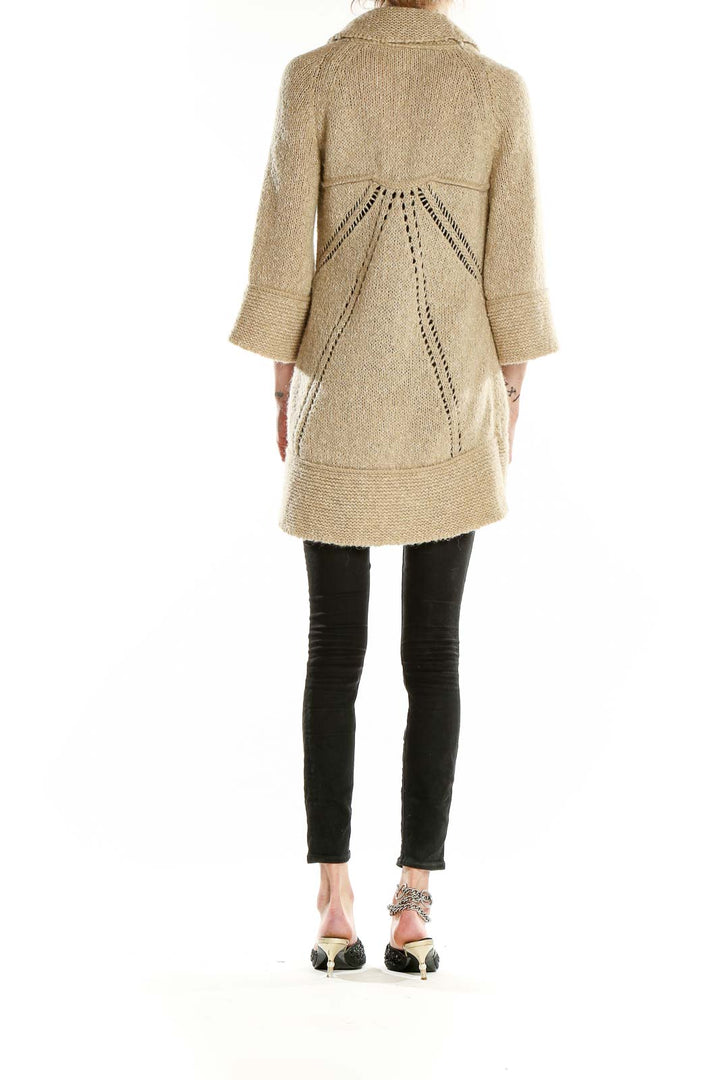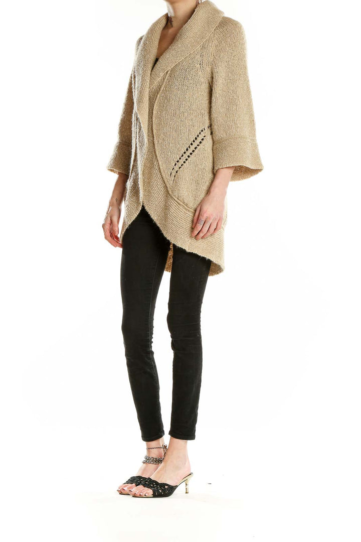 Wrap yourself in cozy elegance with this beige shawl collar knit cardigan from Ann Taylor LOFT. Crafted from a luxurious blend of acrylic, cotton, linen, nylon, and wool, this cardigan offers both warmth and style. The oversized shawl collar adds a touch of sophistication, while the relaxed fit ensures comfort for all-day wear.