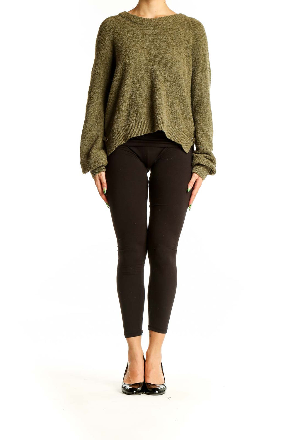 Wrap yourself in comfort with this olive-colored oversized knit sweater from Sonoma Goods for Life. Perfect for casual outings or lounging at home, this sweater features a relaxed fit and a soft, textured knit that's both stylish and cozy. The polyester and spandex blend offers a gentle stretch for all-day comfort, while the ribbed crew neckline and cuffs add a classic touch. The high-low hemline with side slits provides a modern, flattering silhouette that pairs beautifully with leggings or jeans. In good condition, this versatile piece is ideal for layering or wearing on its own during cooler days.