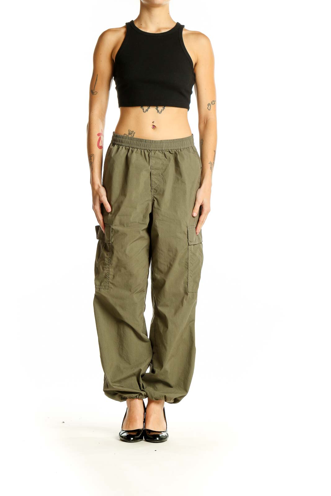 Step into style and comfort with these versatile olive green cargo pants from Uniqlo. Made from a durable blend of cotton and nylon, these pants offer both breathability and resilience for all-day wear. The relaxed fit and elastic waistband ensure a comfortable, adjustable fit, while the cargo pockets add a functional touch to the classic design. Perfect for casual outings or light outdoor activities, these pants feature a straight leg silhouette that pairs well with various tops and shoes. The excellent condition speaks to their quality and durability, making them a reliable addition to your wardrobe. With a hip measurement of 32", length of 39", and waist of 30", these size Small pants offer a flattering fit for a range of body types.