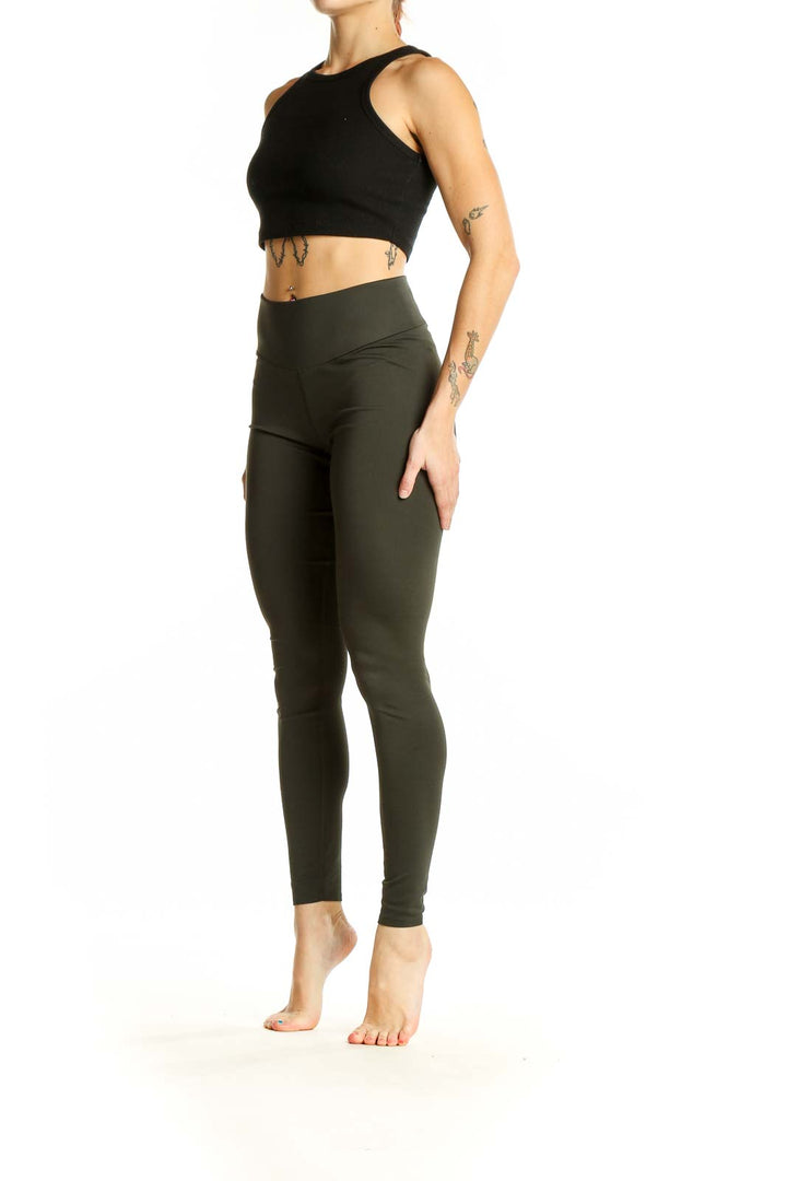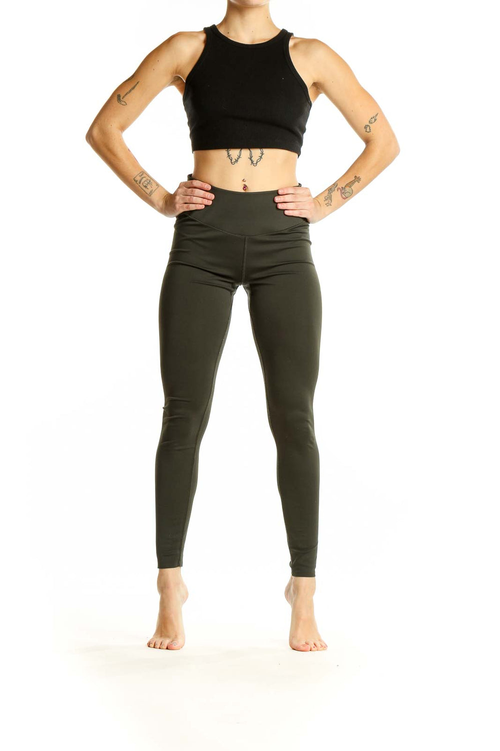 Elevate your workout wardrobe with these sleek olive high-waisted leggings from Uniqlo. Crafted from a premium blend of polyester and spandex, these performance leggings offer the perfect balance of comfort and functionality. The high-waisted design provides excellent tummy control and a flattering silhouette, while the stretchy fabric ensures unrestricted movement during any activity. With a full-length cut and a smooth, seamless appearance, these leggings are versatile enough for both intense workouts and casual wear. The excellent condition of these leggings speaks to their durability and quality construction. Whether you're hitting the gym, practicing yoga, or running errands, these Uniqlo leggings will keep you looking stylish and feeling confident.