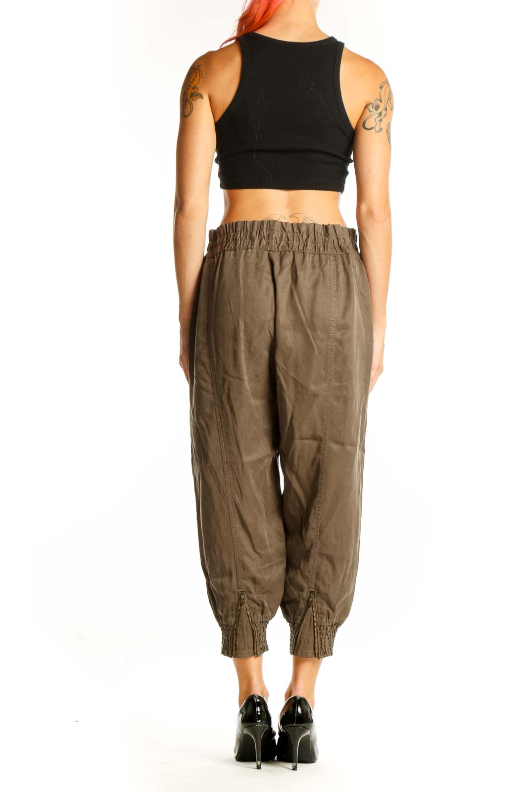 Step into comfort and style with these olive Lyocell cropped jogger pants from Athleta. Perfect for your active lifestyle, these pants feature a relaxed fit with a flattering high-waisted elastic band and gathered ankle cuffs. The soft Lyocell fabric offers breathability and a luxurious feel against your skin, making them ideal for both workouts and casual outings. With convenient side pockets and a versatile mid-calf length, these pants combine functionality with fashion. The excellent condition ensures you'll look and feel great wear after wear. Whether you're heading to yoga class or running errands, these Athleta joggers are the perfect blend of comfort and chic.