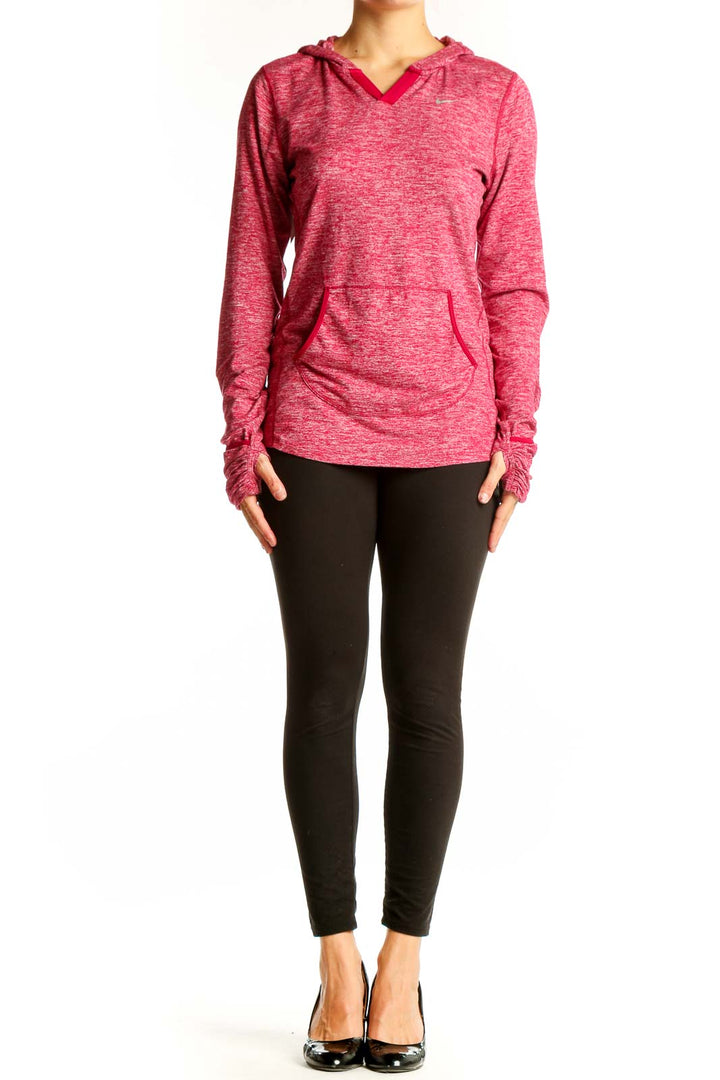 Elevate your athletic wardrobe with this stylish pink heathered performance hoodie from Nike. Crafted from a comfortable blend of polyester and spandex, this jacket offers both flexibility and durability for your active lifestyle. The heathered texture adds a touch of visual interest to the vibrant pink hue, making it a standout piece for your workouts or casual outings.