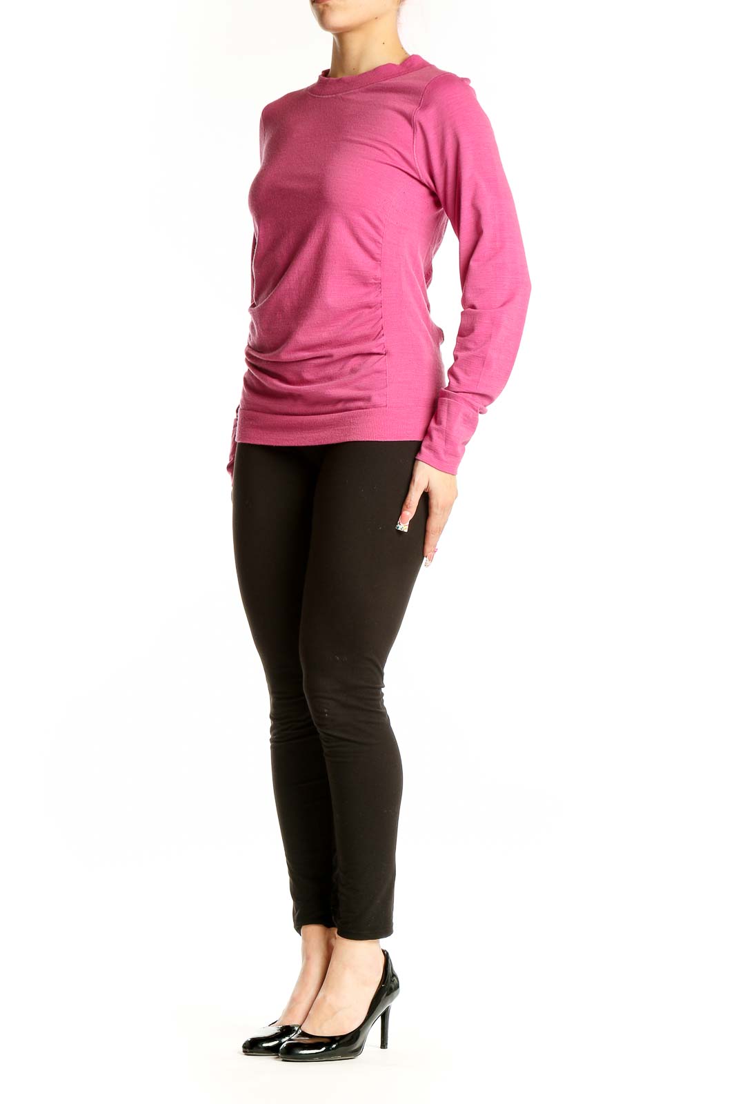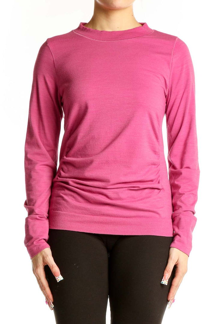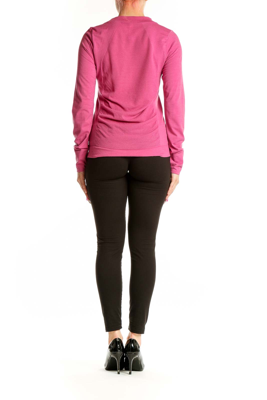 Elevate your workout wardrobe with this vibrant pink athletic top from Athleta. Crafted from a high-performance blend of nylon and spandex, this top offers both comfort and flexibility for all your active pursuits. The long-sleeve design provides coverage and warmth, while the form-fitting silhouette flatters your figure and allows for unrestricted movement.
