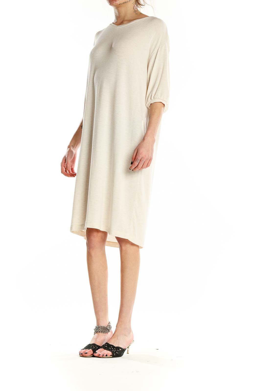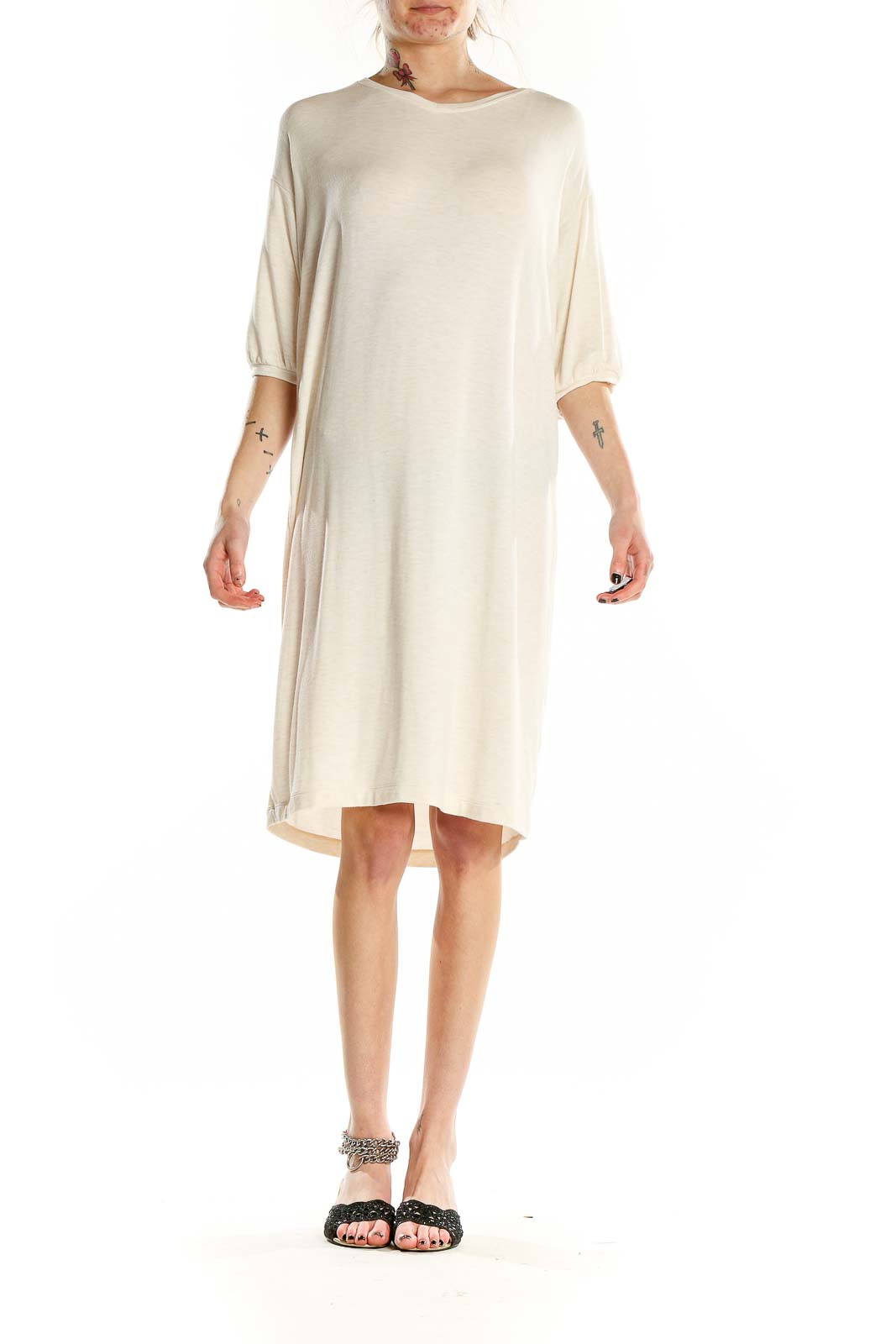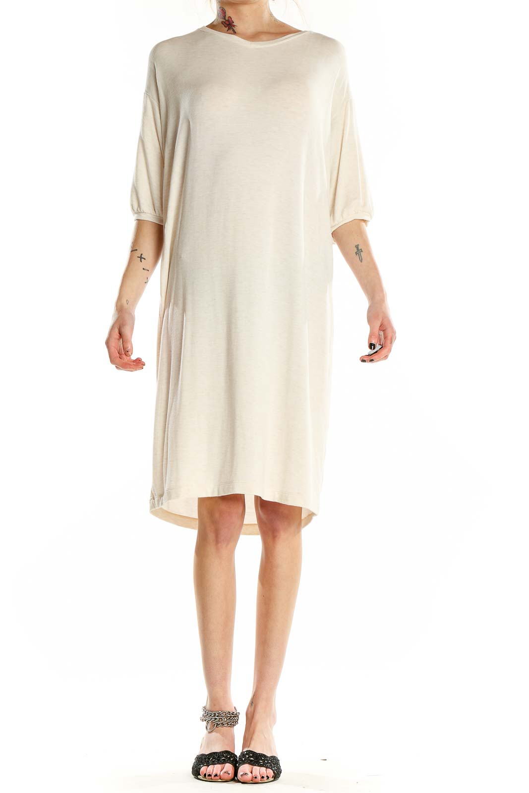 Elevate your casual wardrobe with this effortlessly chic cream t-shirt dress from Uniqlo. Crafted from a soft and stretchy blend of rayon and spandex, this dress offers both comfort and style for all-day wear. The relaxed fit drapes beautifully over the body, creating a flattering silhouette that's perfect for various body types.