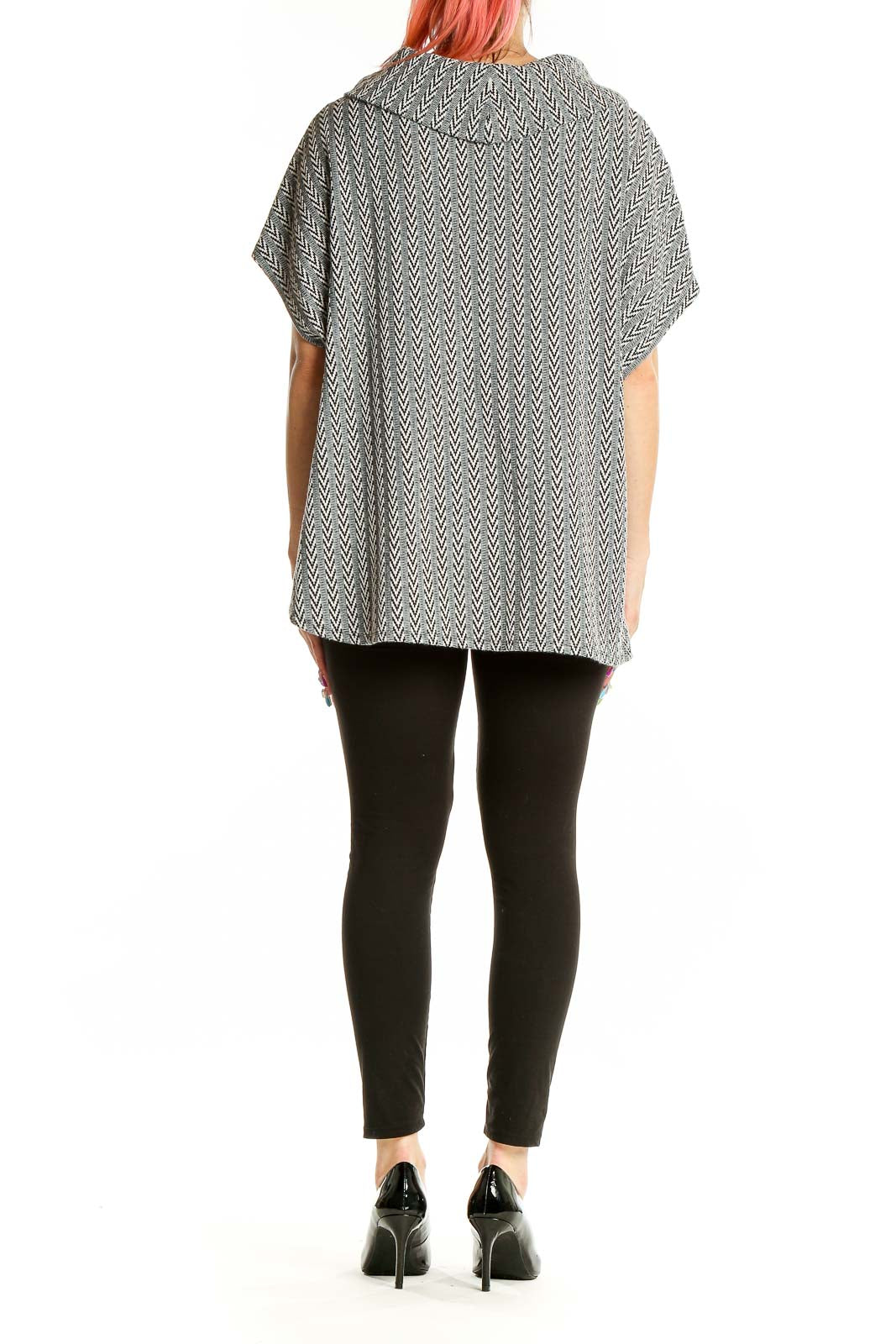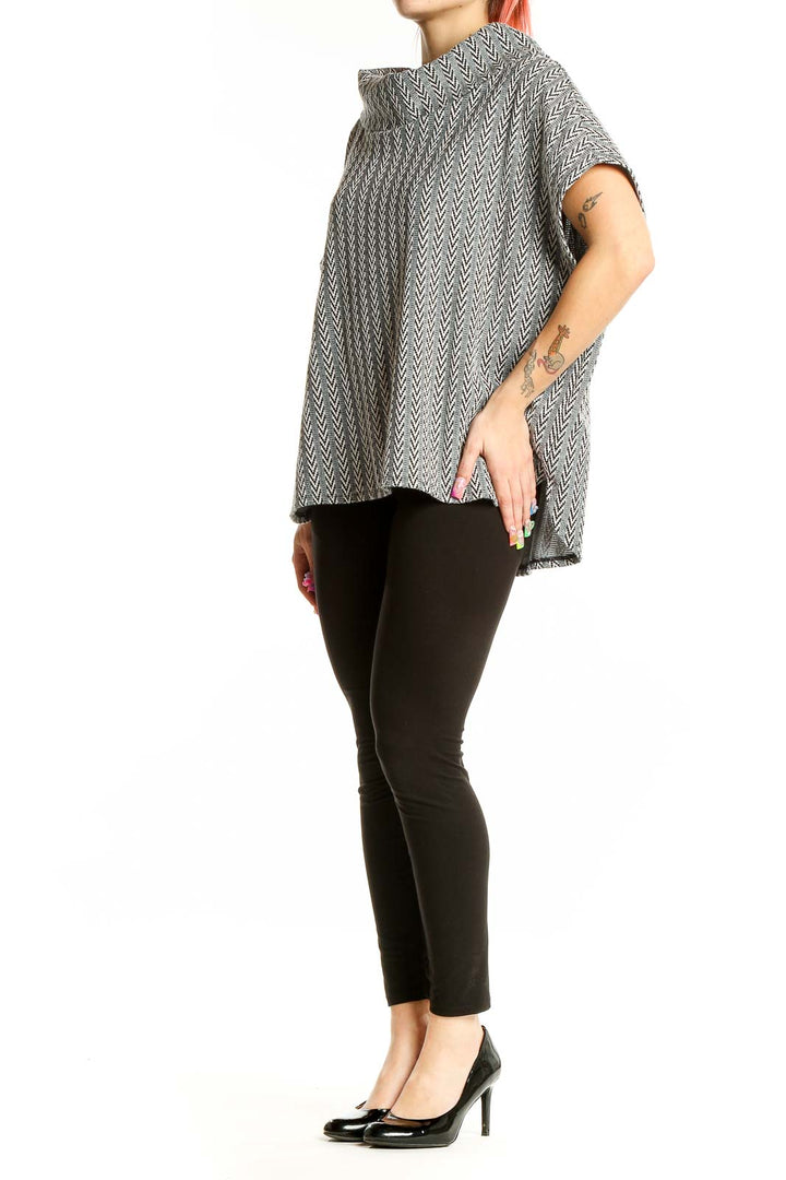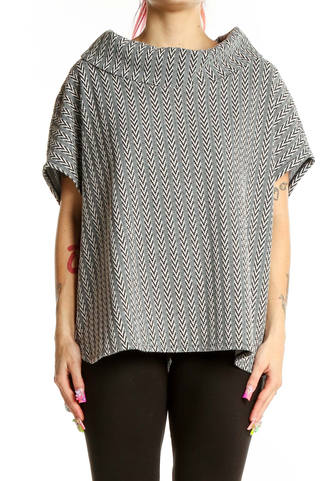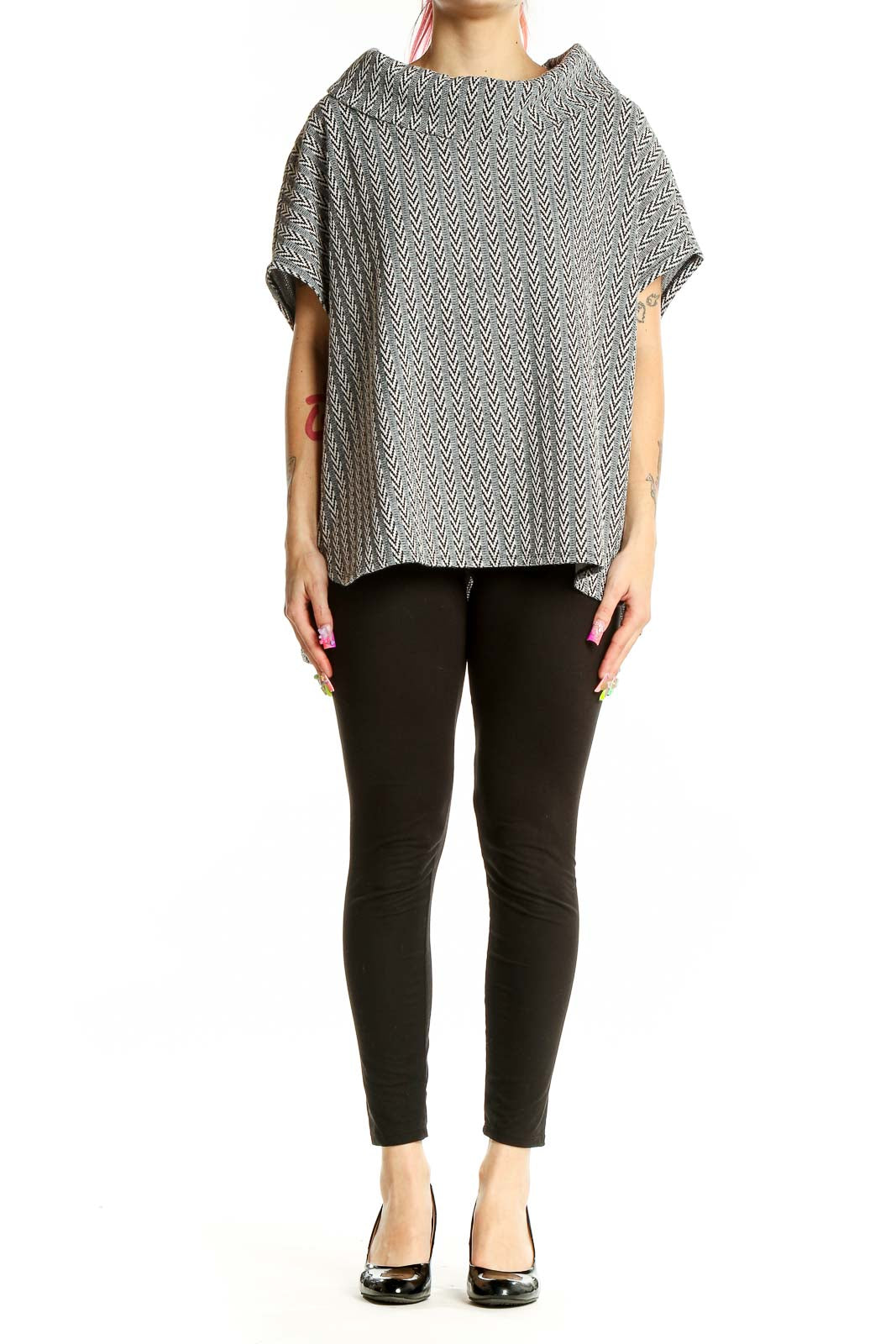 Elevate your casual wardrobe with this chic gray chevron knit poncho top from Chaus. The eye-catching chevron pattern in shades of gray and white adds a touch of sophistication to this comfortable and versatile piece. Made from a soft blend of cotton, polyester, and spandex, this top offers both comfort and stretch for all-day wear.